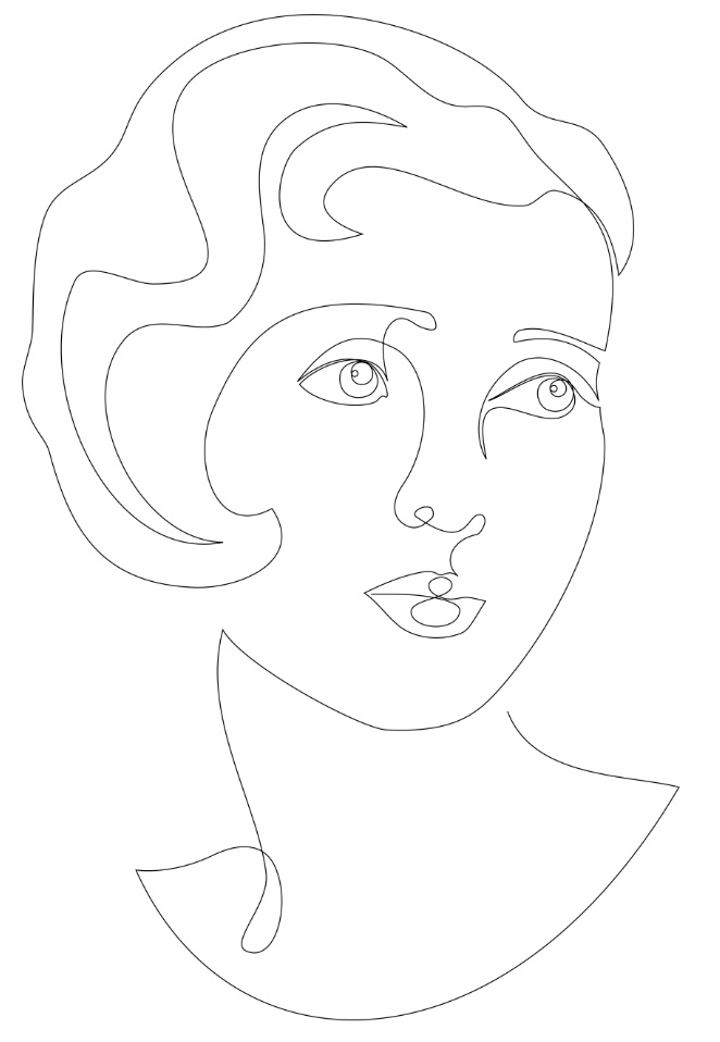 Coy Flapper. Digital line art. It’s all one (very long) line. ●