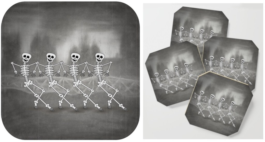 Dancing Skeletons -digital art is one my personal favorites and I have this on my own wall as a high-quality art print from Society6. The image was inspired by 1920’s and 1930’s “rubber hose” animations. ●